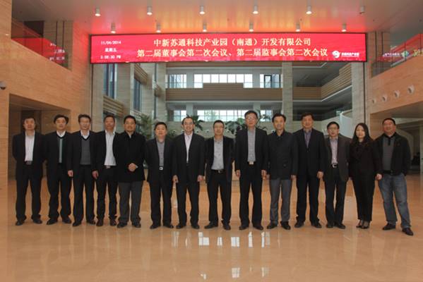 2014年4月11日下午,中新苏通公司在苏通科技产业园江成研发中心一楼会议室召开第二届董事会、监事会第二次会议。中新集团总裁、中新苏通公司董事长赵志松主持会议,公司董事、监事参加了会议,公司管理层列席了会议。