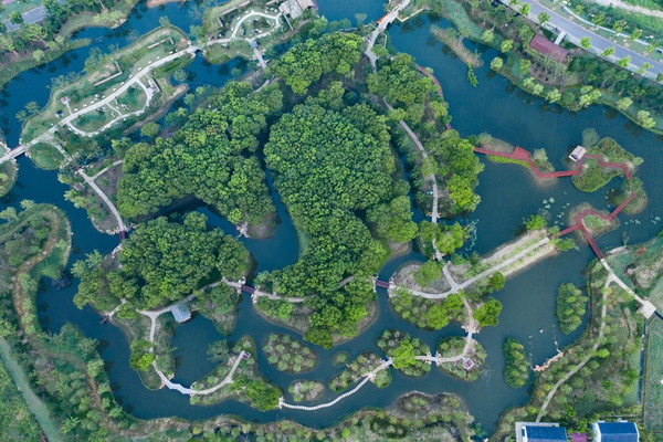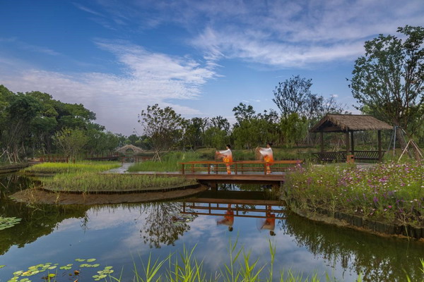 秉承生态优先、绿色发展理念,充分尊重原有地块自然肌理,实施山体修复、梳理水系,最大程度保留、恢复并利用鸷山区域“山水林湖田草”的自然生态资源。