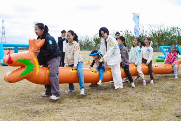 活动现场设置了多样的集体游戏,在“俄罗斯方块”游戏中,大家化身“空间规划师”,俯身搬运、推演布局策略。