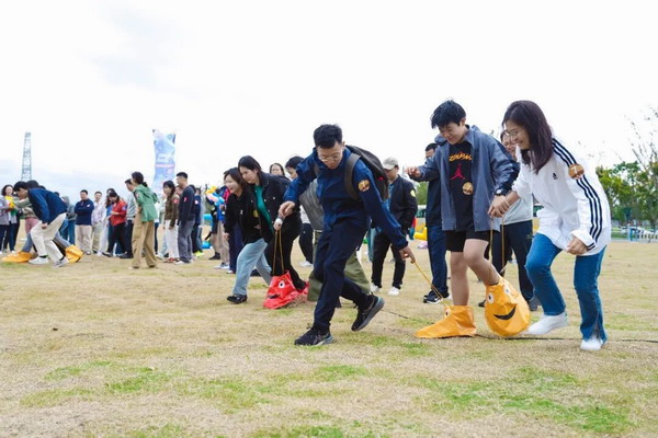到了“快乐的大脚”环节,大家通力合作、奋力向前,在一声声喝彩中顺利抵达终点。